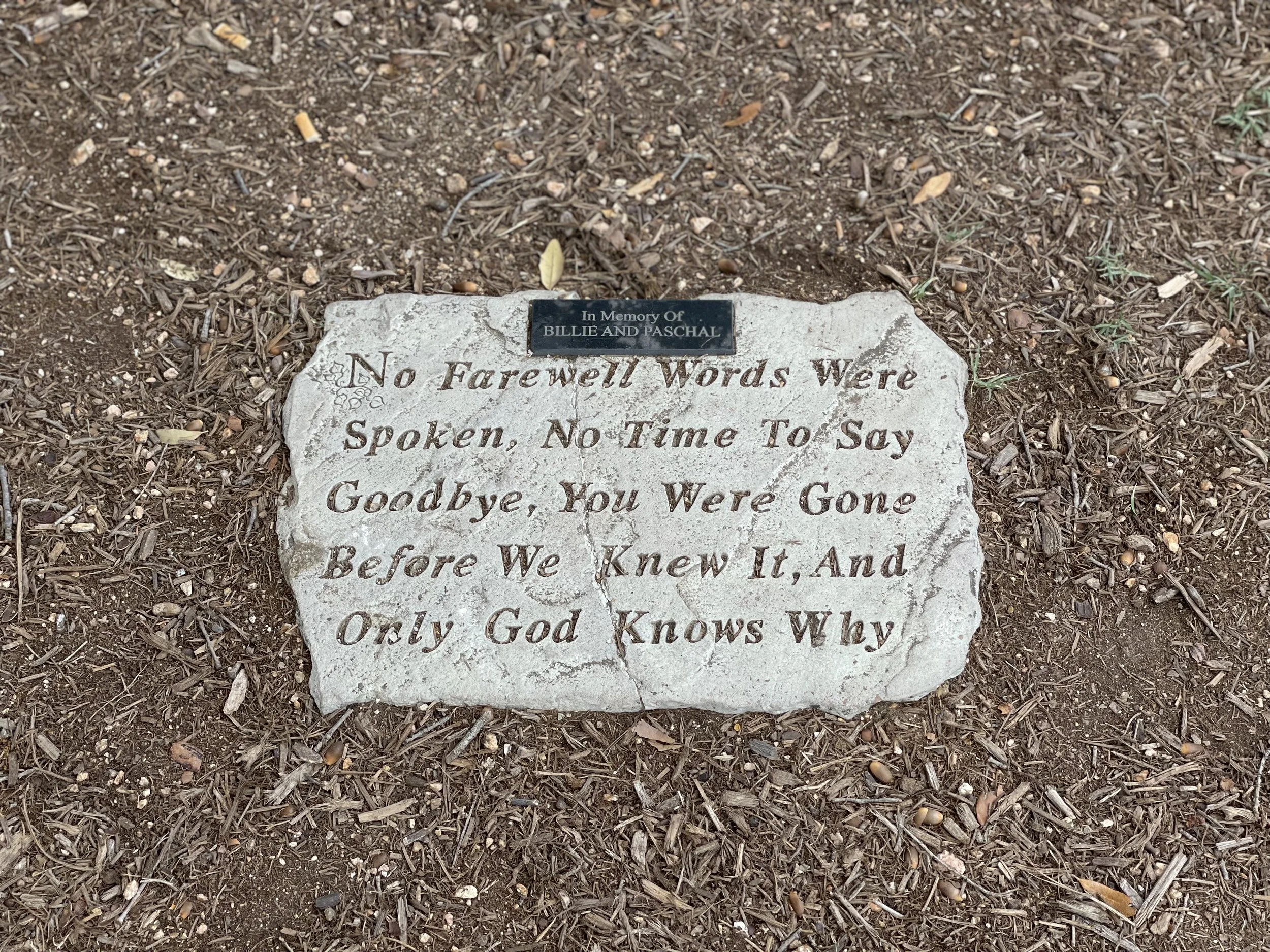 Shelton family members occasionally come in from out of town to help maintain the Shelton bed at the memorial bench.